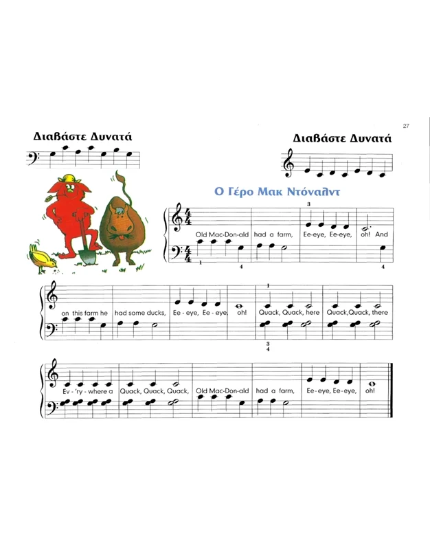 Ένα κλασικό, βιβλίο με ολοκληρωμένα μαθήματα, βήμα προς βήμα ειδικά σχεδιασμένο για να ταιριάζει στις ανάγκες των παιδιών που ξεκινούν το πιάνο. Διαθέτει πολύχρωμους χαρακτήρες και εικονογραφήσεις, ασκήσεις μουσικής γραφής, ασκήσεις ανάγνωσης, καθώς και πολλά άλλα! Περιέχει επίσης φύλλα εργασίας, ασκήσεις ανάγνωσης και συνοδεία για δάσκαλο ή γονέα
