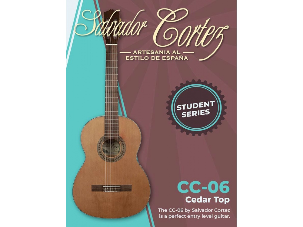 Η CC-06 της Salvador Cortez είναι η τέλεια κλασική κιθάρα για αρχάριους! Διαθέτει nylon χορδές για άνετο παίξιμο, καπάκι από κέδρο, ρυθμιζόμενο μπράτσο και κομψό σατινέ φινίρισμα.