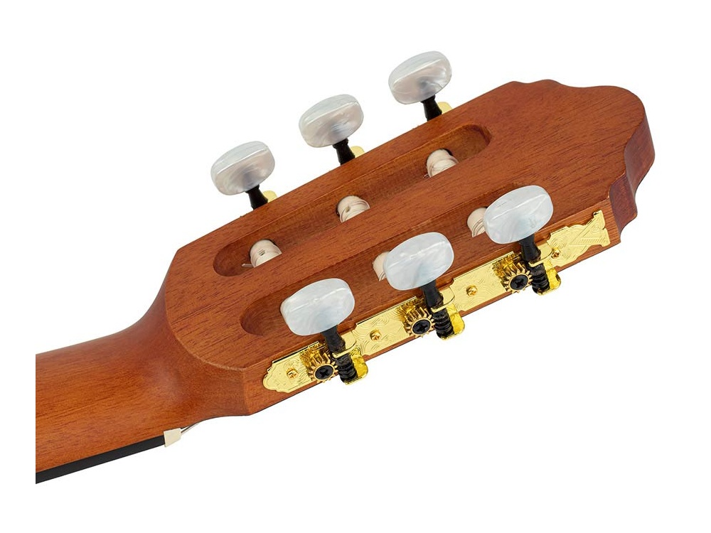 Με επιλεγμένο πάνω μέρος από έλατο Sitka και το πίσω και πλαϊνά από μαόνι σε συνδυασμό με το μπράτσο από μαόνι και την ταστιέρα από τριανταφυλλιά προσφέρουν εξαιρετική σταθερότητα και μουσική λεπτομέρεια. Η αντισταθμισμένη σέλα γέφυρας GraphTech Nu-bone XB και οι χορδές USA προσφέρουν πλούσιο τόνο με ζωντανή παρουσία.